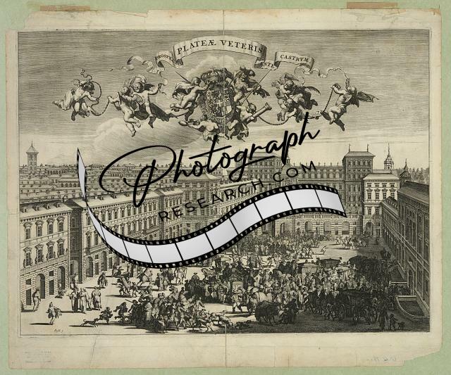 Plateae veteris,cherubs,deHooghe,crowded courtyard,buildings