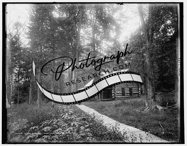 Cottage,hotel,log cabins,buildings,dwellings,paths,Lake Gogebic,Michigan,MI,1880