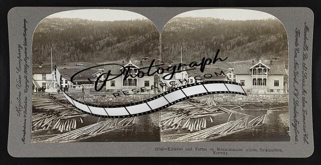Kirkebo and farms on mountainside above, Telemarken, Norway