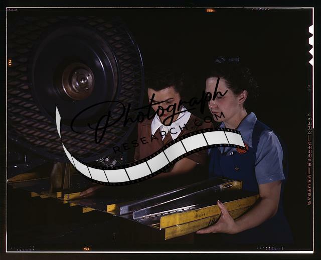Title: Riveting team working on the cockpit shell of a B-25 [i.e. C-47] bomber at the plant of North American Aviation, Inc., Inglewood [i.e. Douglas Aircraft Company, Long Beach], Calif.