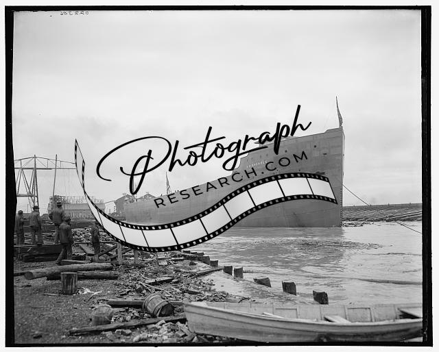 Launch,SS JH Sheadle,freighters,cargo ships,boats,docks,Ecorse,Michigan,MI,c1906