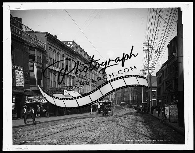 Middle Street,roads,tracks,buildings,carriages,signs,Portland,Maine,ME,c1904