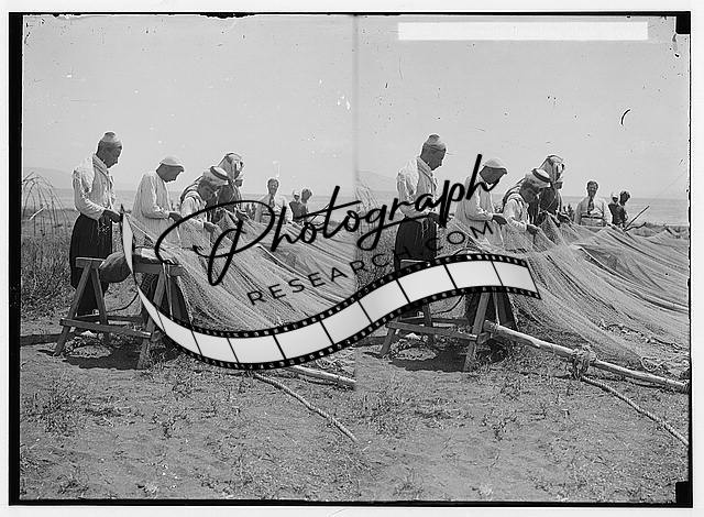 Northern views,Fisherman mending their nets,Middle East,American Colony,c1910