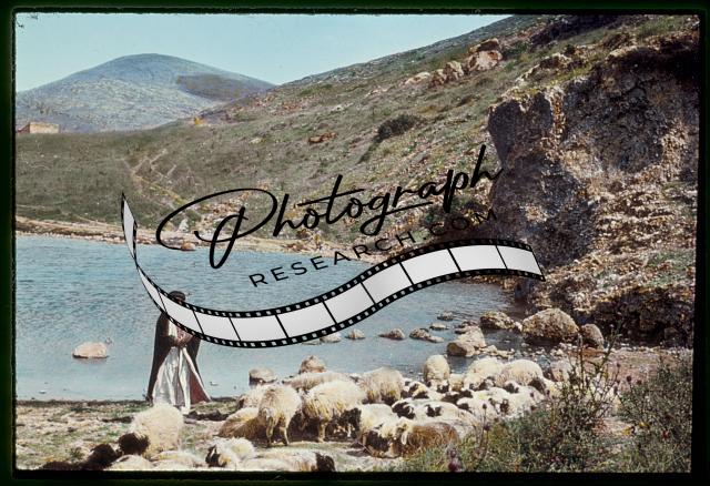 Color slide reproduced from black and white negative or print which was handcolored, and then photographed with color film.