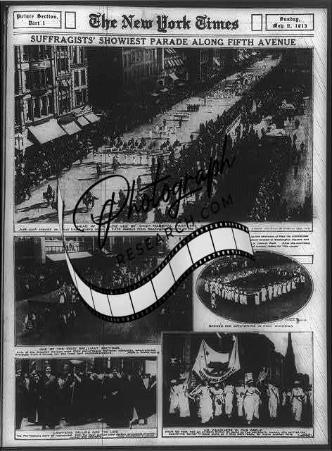 Suffragists' showiest parade along 5th Avenue,1913,NYC