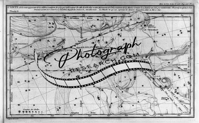 Photo of Celestial Chart,Charles Messier,Path of Halley's Comet,Early 1759