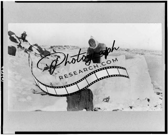 Eskimo Building a Snow House,Canada,Dwelling,Igloo,1929?,Wearing fur coat