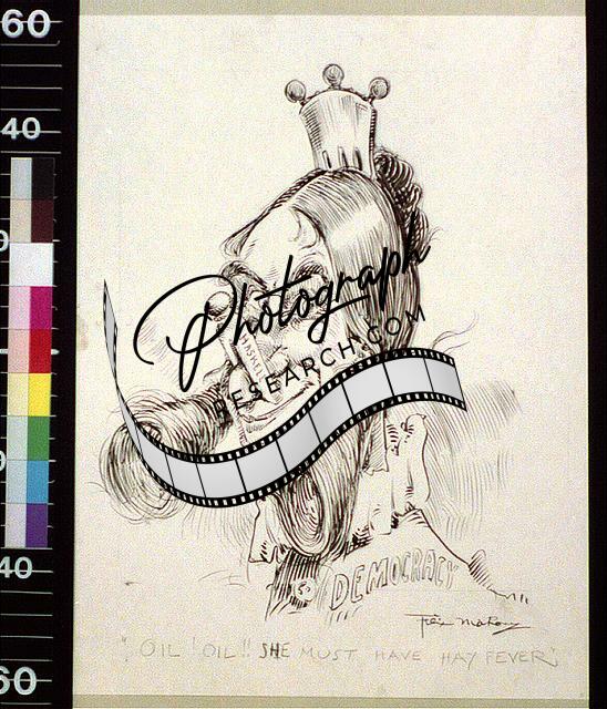 Oil! oil! she must have hay fever,Miss Democracy,Oil Industry,American Cartoon
