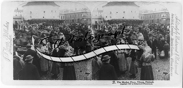 Photo of Stereograph,The Market Place,Viborg,Finland,Crowd,Russia,Vyborg,c1897