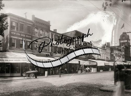 7th,I streets,N.W.,Washington,D.C.,Street Vendor,Hahns,New Era Shoe House,c1900