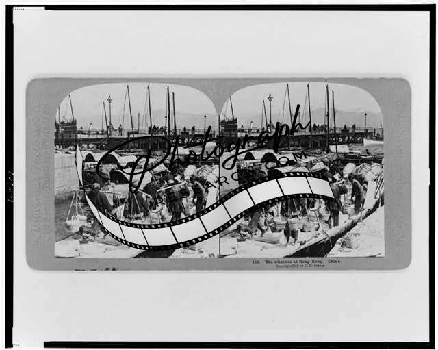Photo of Stereograph,Wharves at Hong Kong,China,Pier,Workers,Busy Wharf,c1902