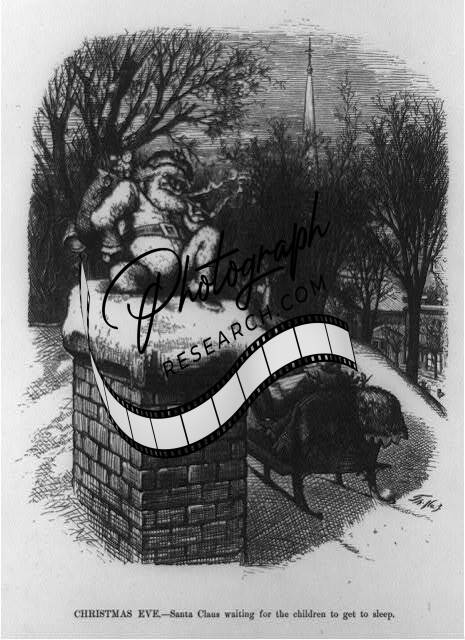 Christmas Eve,Santa Claus waiting,children,sleep,presents,roof,Thomas Nast,1890