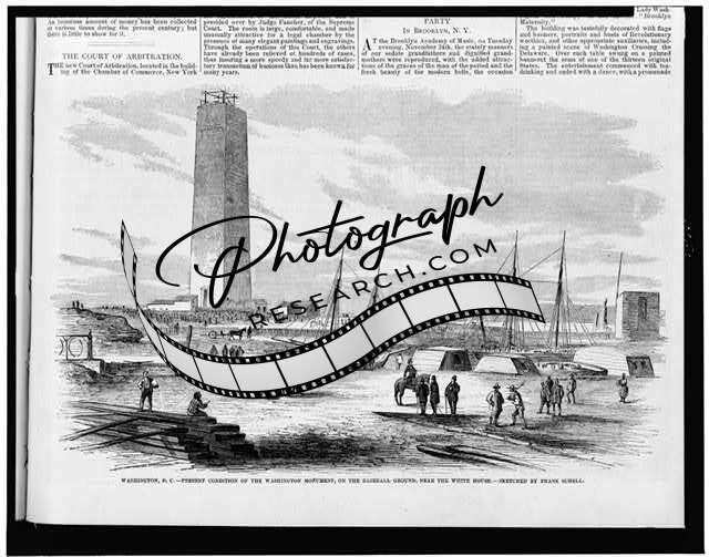 Title: New York City - St. John's guild - the ladies of the society, at their Monday evening sewing circle, making garments for the poor. Washington, D.C. - present condition of the Washington Monument, on the baseball ground, near the White House / / sketched by Frank Schell
