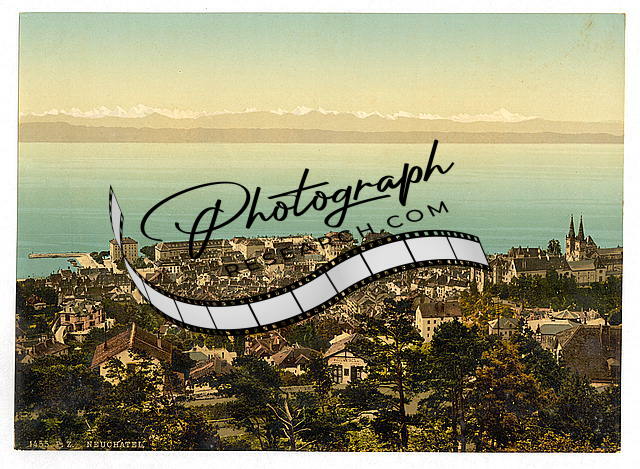 The town,showing Alps,Neuchatel,the castle,Switzerland