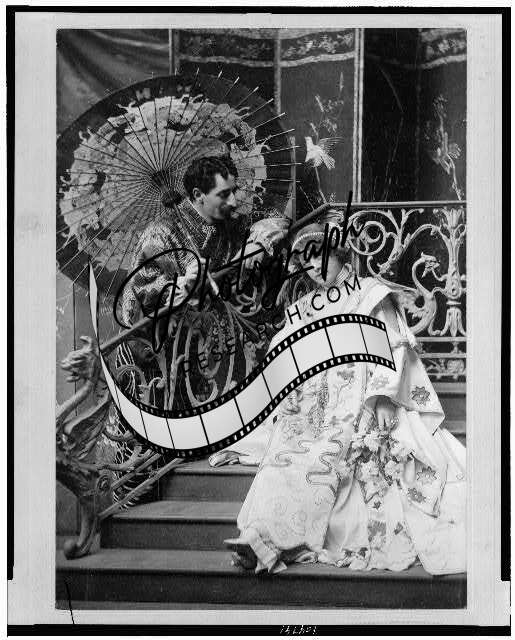 Leon,Adelaide Herrmann,performances,magicians,costumes,umbrella,stairs,1896