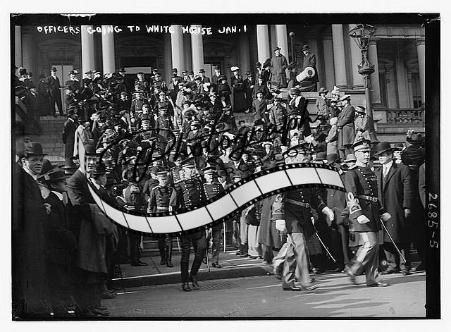 Officers,White House,Washington,D.C.,January 1st,crowd gathered,1910-1915 1