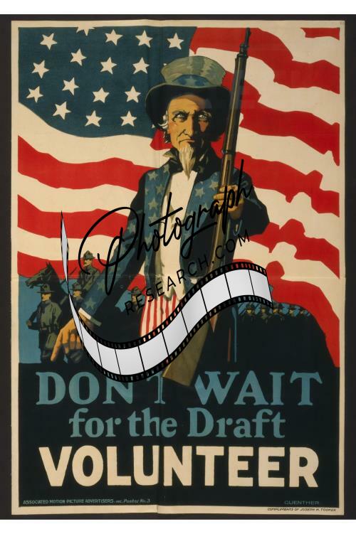 Don't Wait for the Draft,Volunteer,1917,Uncle Sam,American Flag,Rifle,War Photo