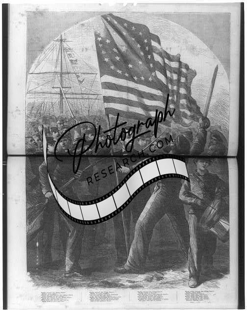 Union Soldiers,Abraham Lincoln holding US Flag,Rally Round the Flag,1864