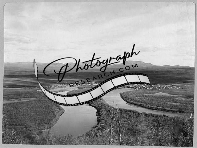 View of town,mountains,streams,Iditarod,Alaska,AK,United States,1900-1930