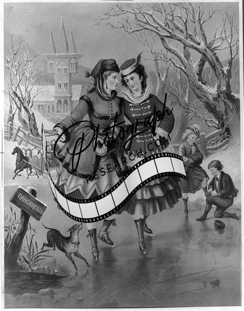 Winter,c1874,Ice Skating,women,children,Dangerous sign,horse drawn sleigh