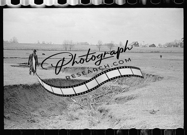 Gully erosion,Parke County,Indiana,IN,Farm Security Administration,FSA,1940,1