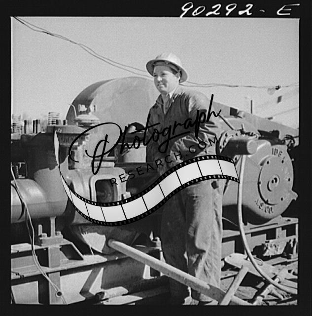 Title: Oil man by new well being drilled in Goodrich field of Continental oil company. Valley Center oil field near Wichita, Kansas