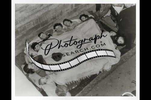 Family,Sleeping,one bedspread,Air Raid shelter,London