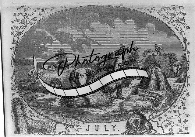 July,Farmers cutting,bundling,loading hay,wagon,1854