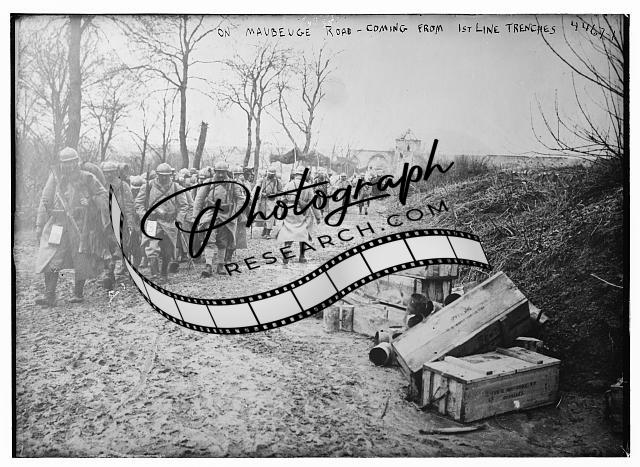 On Maubeuge Road -- coming from 1st line trenches,Military,soldiers,Bain News