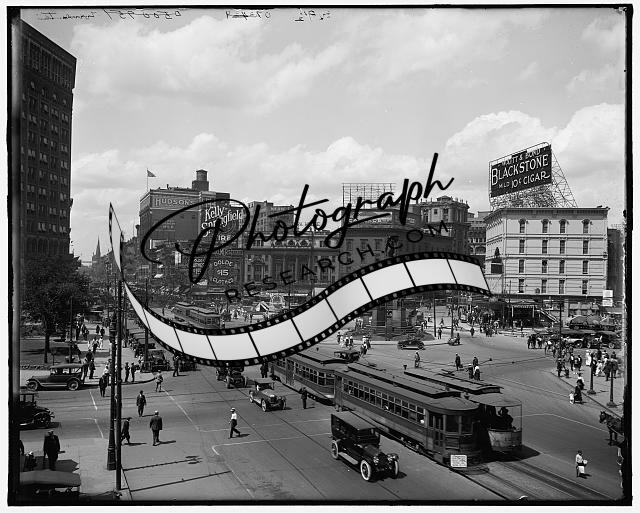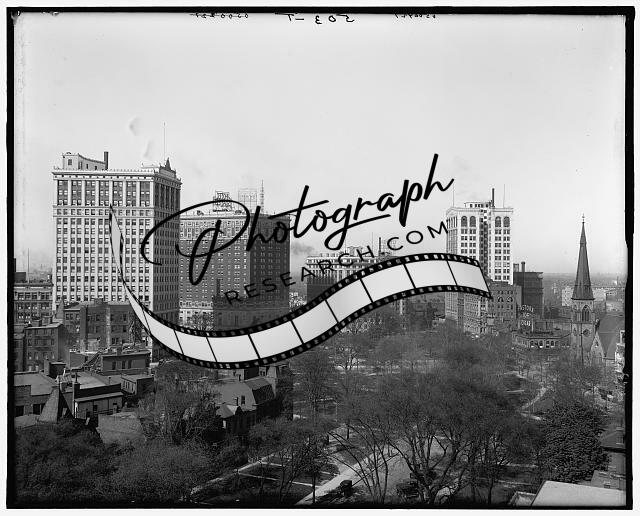 Looking west,Grand Circus Park,office buildings,roads,Detroit,Michigan,MI,1910