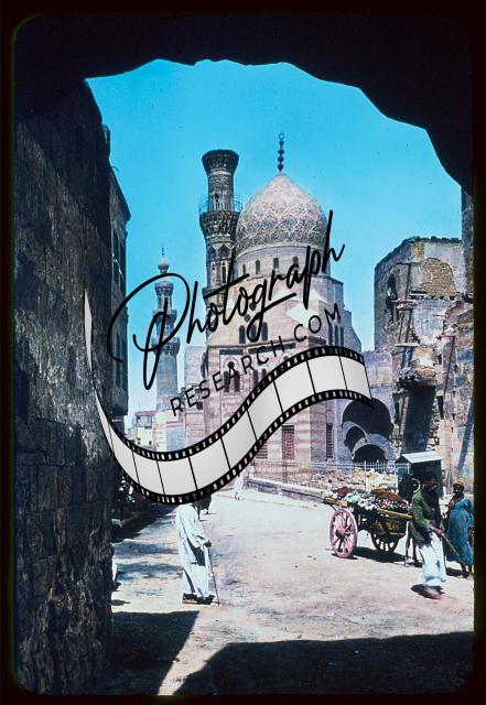 Egypt. Cairo. Cairo street scene,Mosque of Kait Bey,Matson Photo Service