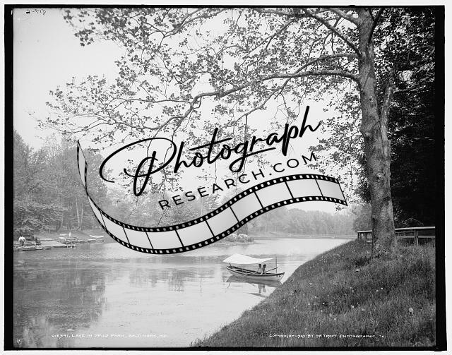 Lake,water bodies,canoes,boats,islands,Druid Park,Baltimore,Marylands,MD,c1903