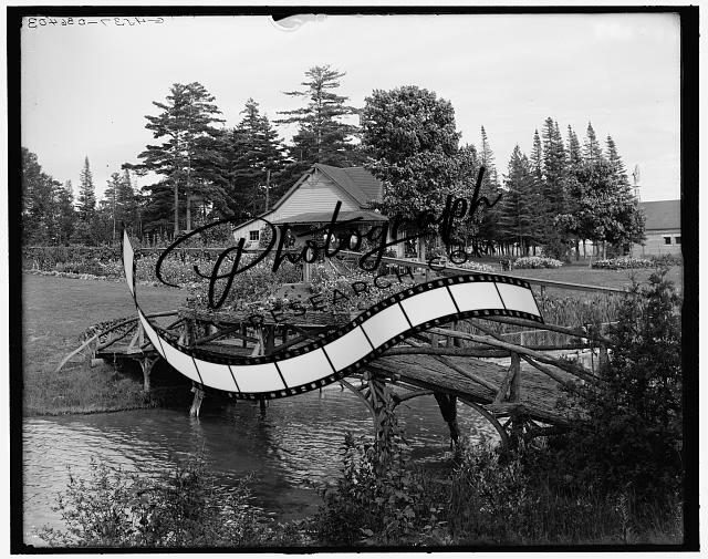 Cottage among flowers,dwellings,pedestrian bridges,Charlevoix,Michigan,MI,1900