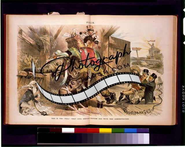 Photo of Puck,Civil Service Reform,1889,Dalrymple,Harrison,Roosevelt,Tanner