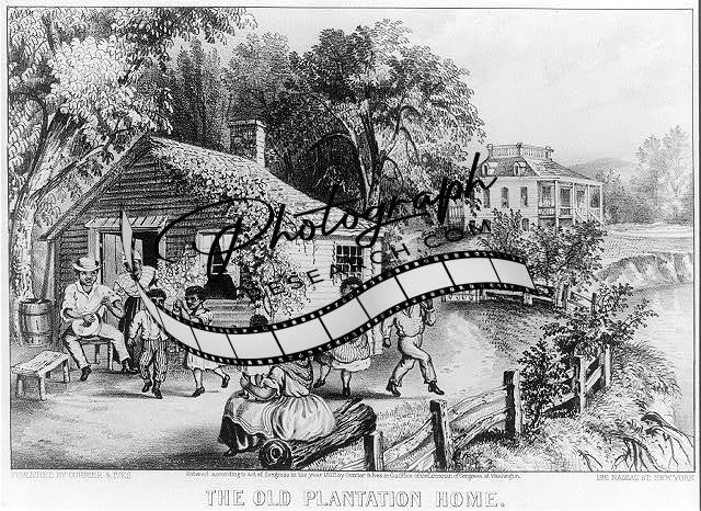 The old plantation home,c1872,Currier & Ives,Photograph,family,banjo,dancing