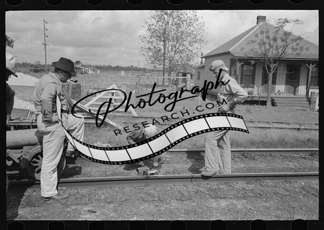 Welding a rail near Port Barre,Louisiana,LA,Farm Security Administration,FSA,1