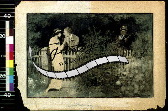 Two's company,William Leroy Jacobs,1914?,Courtship,Couple,Love,Fence,Trees