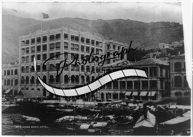 Hong Kong Hotel,taverns,buildings,waterfronts,Sampans,boats,ships,China,c1900