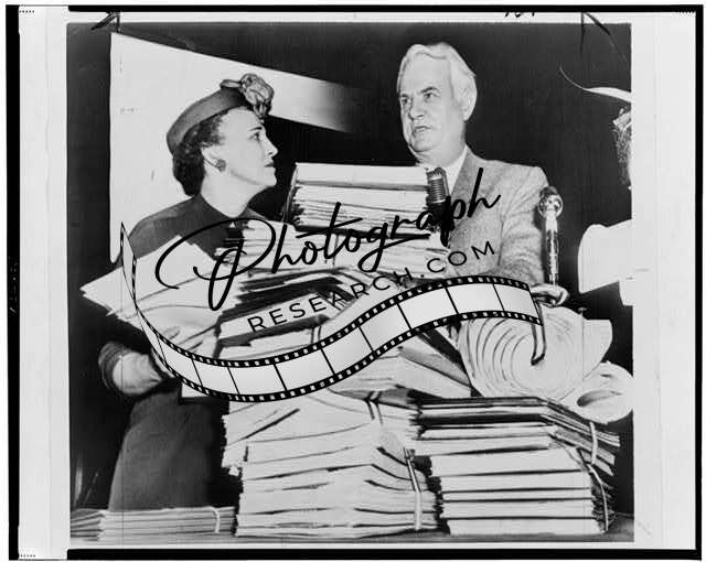 Senator John Bricker,Mrs. Robert Murray,mound of Petitions,1954,treaty-making