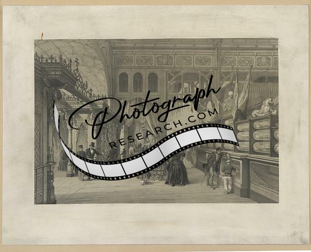 Exposition universelle vue interieure du palais de l'industrie prise de la fontaine du centre et de la volière tahan