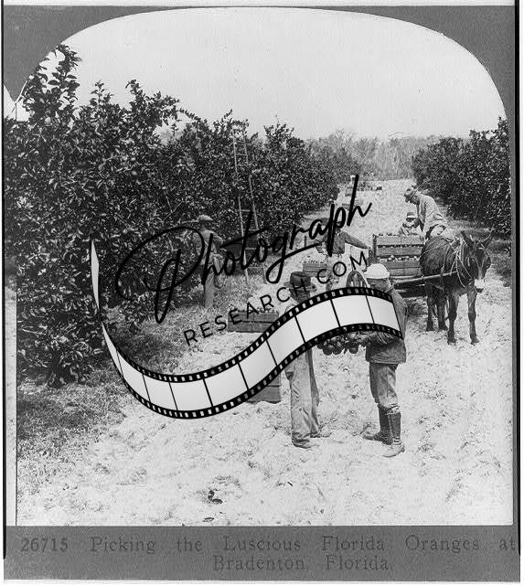 Picking the Luscious Florida Oranges,Bradenton,Florida,FL,c1926,Donkey,Men