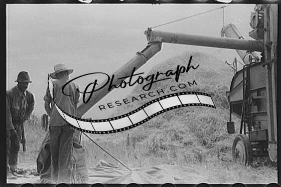 Title: Threshing wheat on farm in Oldham County, Kentucky