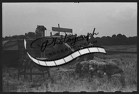 Title: Threshing wheat on farm in Oldham County, Kentucky