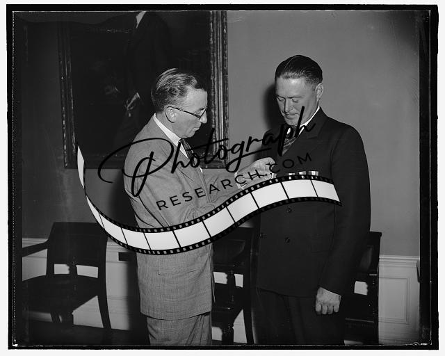 John W. Hanes presents Morgenthau cup,winner of Treasury rifle match,1939