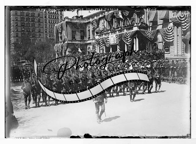 Olympic Athletes Parade,12th regiment marching before City Hall,New York,1908