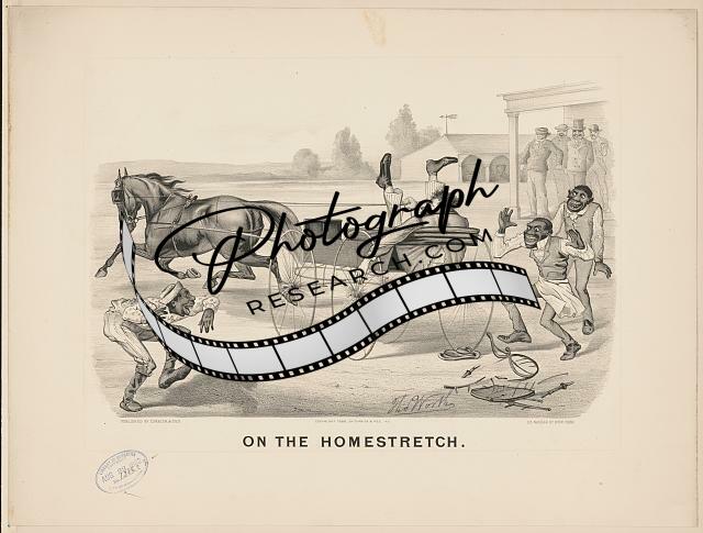 On his style,Darktown Comics,c1886,Photograph,Currier & Ives,Bicycle,Locomotive