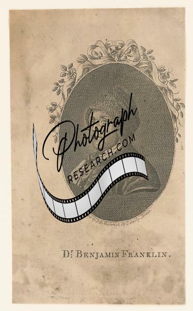 Summary: Print shows Benjamin Franklin, full-length portrait, left profile, seated at table, hat, book, and papers on table, in the background, through open doors, is view of ships at dock.