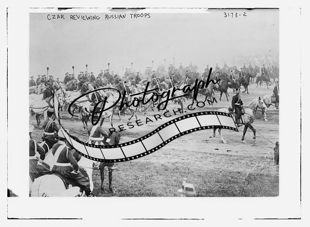 Czar reviewing Russian troops,Military,men on horseback,1910-1915
