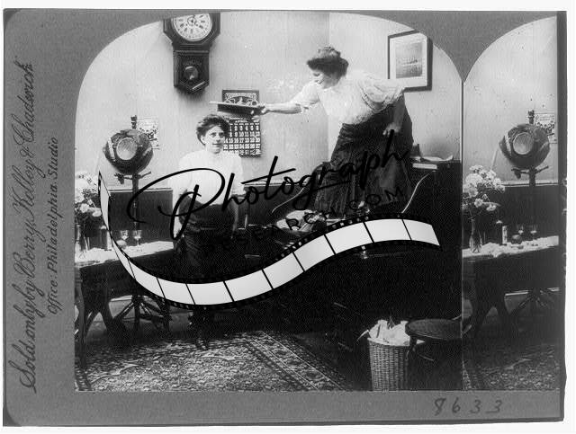 'Just a little bit higher',c1907,women,office,clock,vase of flowers,desks
