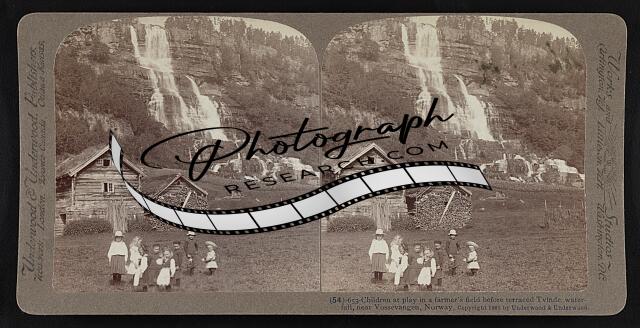 Children at play in a farmer's field before terraced Tvinde waterfall, near Voss